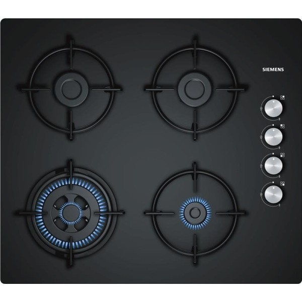 Варочная поверхность Siemens EO6C6HB11O проста и понятна в управлении. Источником её питания выступает газ, который расходуется с умом благодаря инновационной технологии Wok Burner.