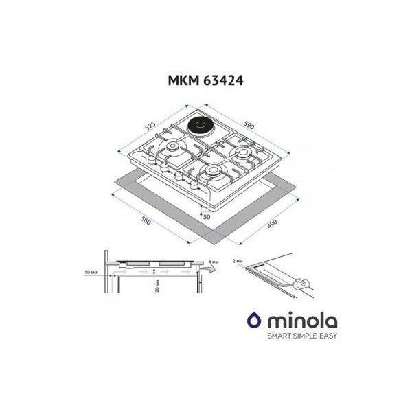 Независимая комбинированная газоэлектрическая варочная поверхность Minola MKM 63424 I – это стильная, удобная модель в классическом исполнении, которая гармонично впишется в любой современный кухонный интерьер.