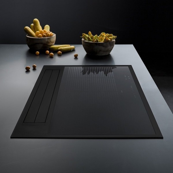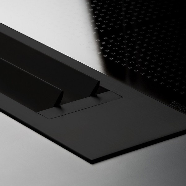 Витончена та функціональна, варильна поверхня Falmec Sintesi BK (CUZW90.00P8#ZZZN460F) інтегрована з витяжкою. Чорна панель, з корпусом із чорної нержавіючої сталі доповнена всмоктувальними елементами, що знаходяться паралельно зонам нагріву.
