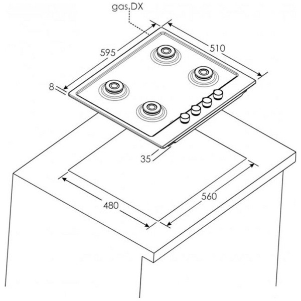 Варильна поверхня Candy газова, 60см, конфорка з подвійним рядом полум'я, нерж