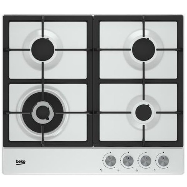 Опис Варильна поверхня газова Beko HIAW 64225 SW - 60см / 3газ+WOK / чавунні решітки / білий