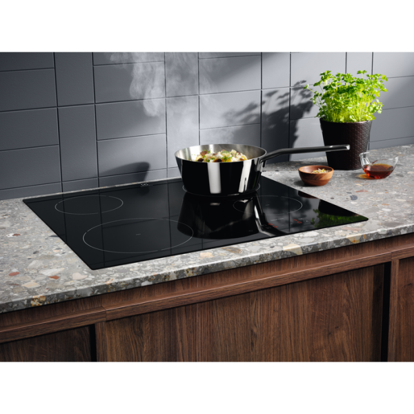 Завдяки інтелектуальній технології індукційного нагрівання конфорки цієї варильної панелі включаються лише при розміщенні на них посуду. Варто прибрати посуд, як вони автоматично вимикаються.