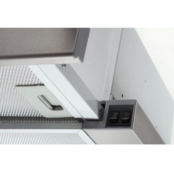 Телескопічна кухонна витяжка Storm 960 60 IS володіє широким рядом переваг, які не залишать байдужим навіть найвибагливішого покупця. Перш за все слід зазначити, що висота вбудованої частини становить лише 138 мм, що дозволить легко вмонтувати витяжку в стандартну шафку для вбудованої техніки. Однак, конструктори ТМ ELEYUS зробили практично неможливе - помістили в цей надкомпактний корпус високопотужну турбіну продуктивністю 700 м³/год, що не має аналогів на сучасному ринку кухонних витяжок. Сучасний і надійний висувний механізм прикрасить кухню будь-якого стилю і дизайну, а висувна телескопічна панель із нержавіючої сталі високої якості забезпечить додаткове втягування. У своїй продукції ми застосовуємо високотехнологічні телескопічні напрямні нового покоління, відмінними рисами яких є нульове потрапляння на них жиру і легкий хід панелі. Storm 960 60 IS пофарбована високоякісною порошковою фарбою, що не тільки надає їй привабливого зовнішнього вигляду, але і захищає метал від корозії і робить його надзвичайно довговічним.