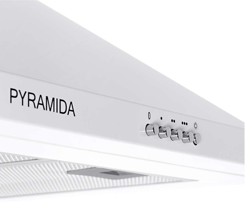 Залежно від конкретної моделі, витяжка здатна очистити 700 м³ повітря, працює в 3-х швидкісних режимах, має механічне керування, освітлення звичайне. У будь-якому інтер*єрі, і класичному, і сміливо авангардному, витяжка Pyramida KH WH буде виглядати красиво і гармонійно.