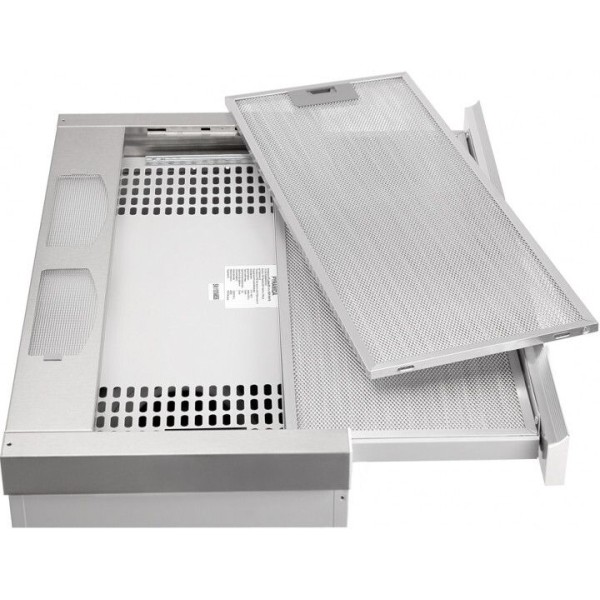 Телескопічна витяжка Pyramida TL 60 повністю вбудовується у підвісну шафу над варильною поверхнею (або плитою), видимою залишається лише фронтальна планка висувної каретки. Саме тому витяжка підходить до будь-якого інтер*єру. Ще одна корисна деталь: в шафці, в яку вбудовується витяжка, залишається місце для зберігання речей. Висувна панель з другим жировим фільтром збільшує площу забору повітря і полегшує керування витяжкою. Кнопки ввімкнення двох швидкісних режимів і освітлення розташовані по обидва боки від висувної панелі. Продуктивність роботи телескопічної витяжки Pyramida TL 60 - 700 м³/год. Рівень шуму звичайний, проте шум майже не чути, оскільки витяжка закрита в шафці. У даних моделей телескопічних витяжок є важлива відмінність - відсутність захисного екрана під жировим фільтром. Завдяки цій зміні конструкції, другий жировий фільтр висувається легко, без зусиль. Чисте і свіже повітря на вашій кухні - чудовий результат роботи витяжки TL. Висувний екран з додатковим жировим фільтром збільшує площу забору повітря, прискорюючи видалення непотрібних ароматів. Непомітна. Продуктивна. |