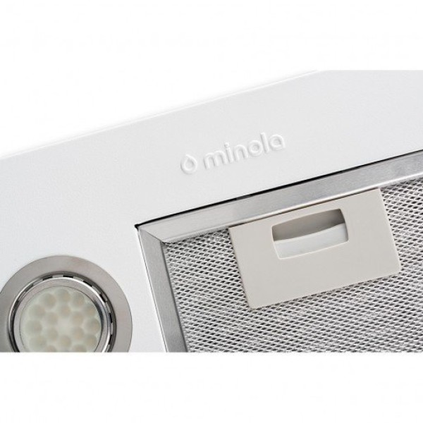 Вытяжка Minola HBI 5824 WH 1200 LED может похвастаться установленным алюминиевым фильтром, который препятствует распространению частичек жира.