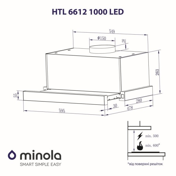 Телескопическая вытяжка Minola HTL 6612 1000 LED работает как на отвод, так и на рециркуляцию воздуха.
