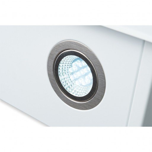 Вытяжка изготовлена из прочного стекла белого цвета, которое легко очищается и стильно выглядит в любом интерьере.