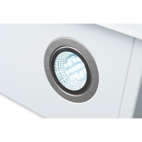 Вытяжка изготовлена из прочного стекла белого цвета, которое легко очищается и стильно выглядит в любом интерьере.