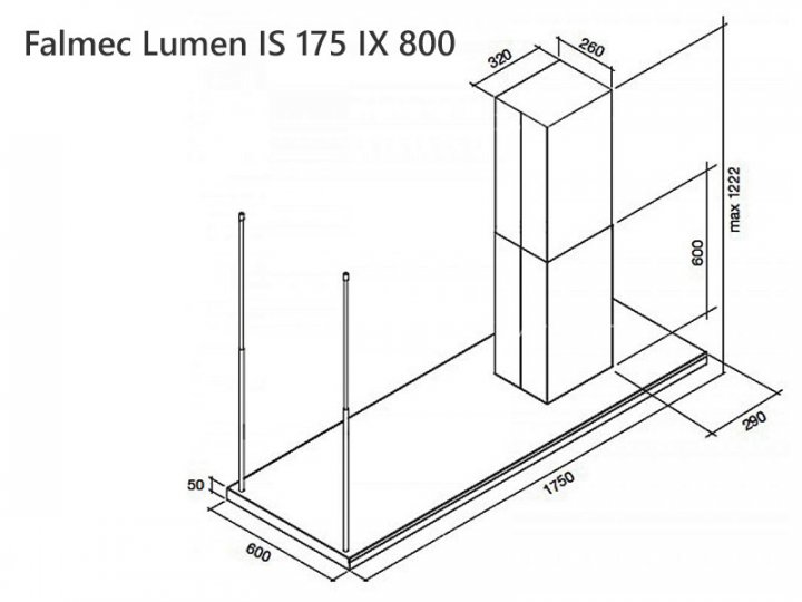Опис Витяжка островна Falmec LUMEN IS.175 IX 800 ліва