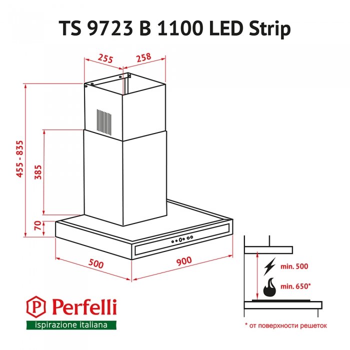 Вытяжка Perfelli TS 9723 B 1100 I/BL LED Strip Стильная вытяжка Perfelli — европейского качества отлично впишется в дизайн Вашей кухни.