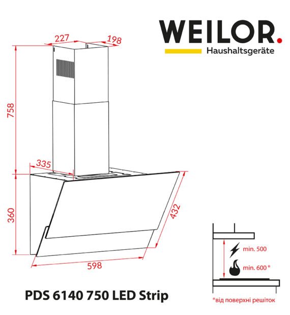 Вытяжка Weilor PDS 6140 BL 750 LED strip