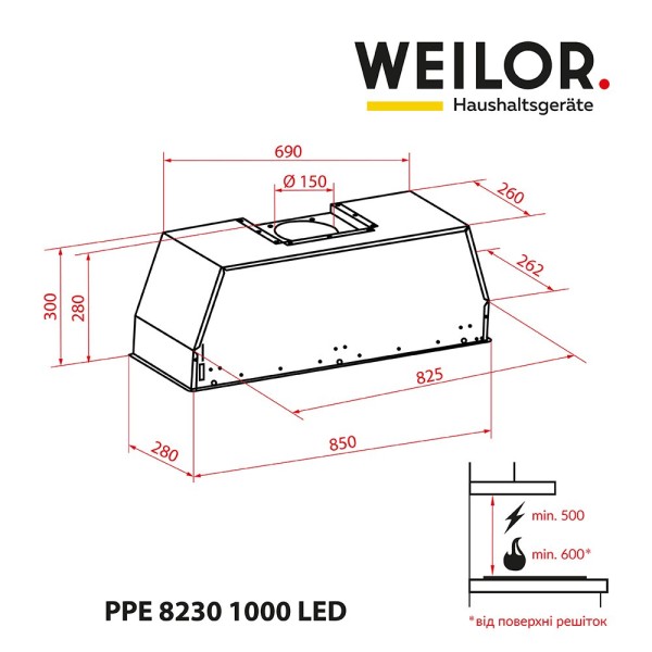 Вытяжка Weilor PPE 8230 SS 1000 LED