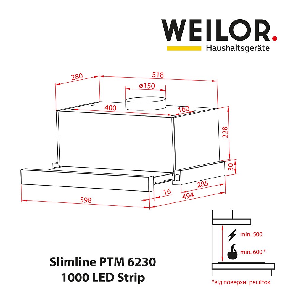 Вытяжка Weilor Slimline WP 6230 SS 1000 LED Телескопические вытяжки WEILOR серии Slimline получили такое название за счет ультратонкой передней панели, которая имеет высоту всего 30 мм.