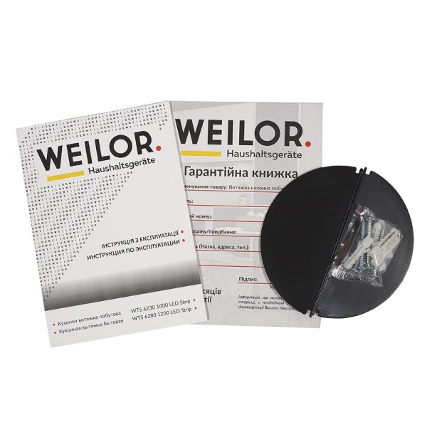 Корпус вытяжки Weilor WTS 6230 BL 1000 LED strip достаточно протереть влажной тряпочкой и этого хватит для того, чтобы её покрытие оставалось чистым и радовало пользователя блеском и отсуствием гари.